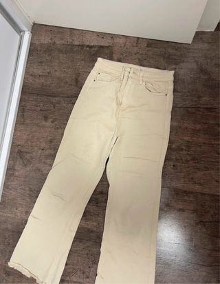 Pantalón de Stradivarius en color beige. - Corte recto. - Bajo deshilachado.