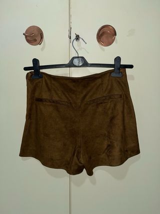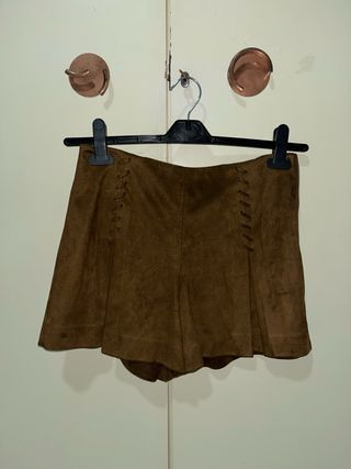 Pantalón corto de color marrón. - Diseño con cordones laterales. - Material tipo ante. - Cremallera en el lateral