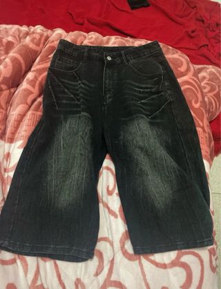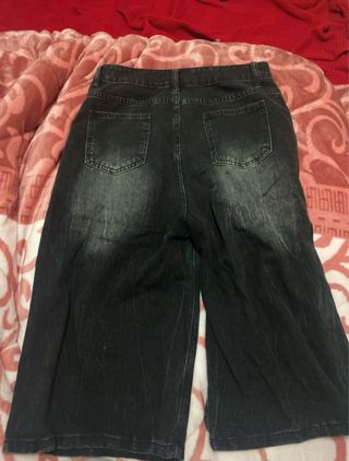 Pantalones negros de corte baggy, con un diseño moderno y cómodo. - Estilo desgastado. - Cintura alta. - Piernas anchas.
