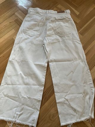 Pantalón de corte ancho. - Tejido vaquero. - Bajo deshilachado. - Cintura alta.
