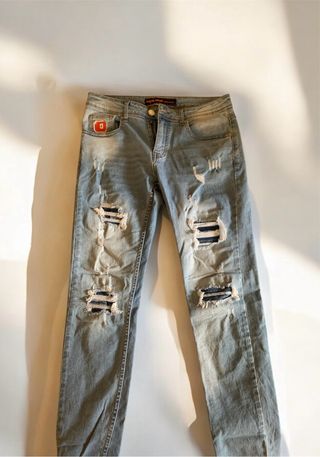 Pantalón de corte casual para hombre. - Diseño moderno. - Tejido cómodo y resistente. 3 pantalones Sfera men y un vaquero marca salsa,todo talla 38 El pantalón de salsa tiene un pequeño roto que se puede coser,mirar foto