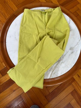 Pantalón de tiro bajo con un llamativo color verde y amarillo. Largo pirata. - Cremallera frontal. - Abertura en el bajo. Muy elástico y cómodo.