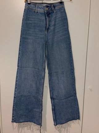 Pantalón High Rise Flare de Bershka. Es una mezcla de vaqueros campana y de elefante. Son elásticos. Talla M. Como nuevos, usados solo un par de veces.