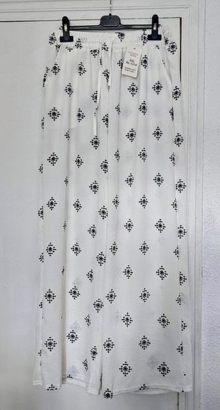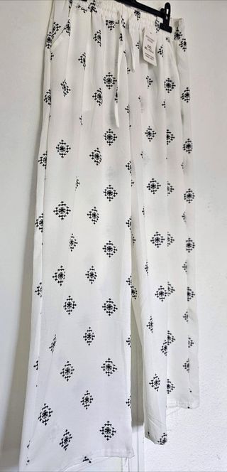 Sin estrenar. Original pantalón fluído acampanado con cintura elástica y estampado bohemio. Tejido ligero y elástico, muy cómodo. Medidas: Cintura elástica sin estirar: 40 Cintura elástica estirada 60 Cadera 62 Largo 97