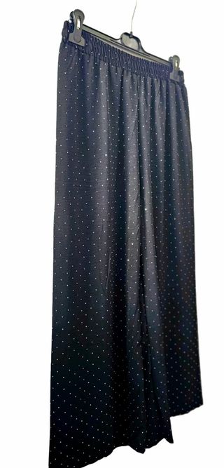 Sin estrenar. Original pantalón fluído acampanado con cintura elástica y estampado brillos estilo boho. Tejido ligero y muy cómodo. Medidas: Cintura elástica sin estirar: 38 Cintura elástica estirada 56 Cadera 56 Largo 99