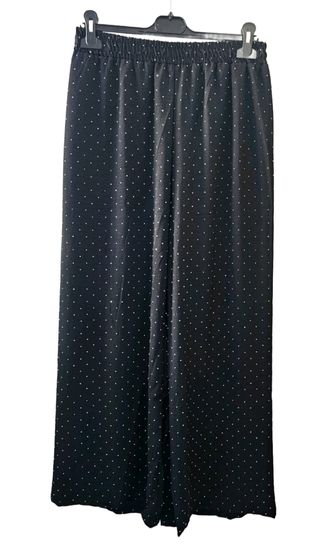 Elegante pantalón negro, ideal para vestir, oficina o incluso trabajos de hostelería -Talla/38/40 -Camal ancho y acampanado - Corte recto, favorecedor. - Tejido liso - Perfecto para cualquier ocasión.