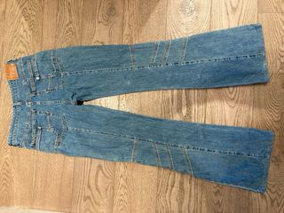Pantalones acampanados de tejido acanalado. Talla 32 pero si usas 34-36 sirven. - Cintura alta. - Pierna ancha. - Cierre de cremallera lateral. ✅‼️Si quieres mas ropa de mi perfil te puedo hacer una rebaja.
