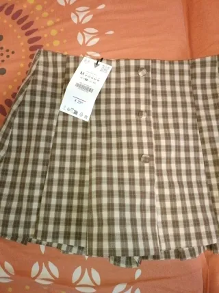 Falda pantalón con estampado de cuadros. - Diseño con botones frontales. - Corte acampanado. - Detalle de volante en el bajo.