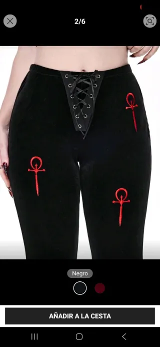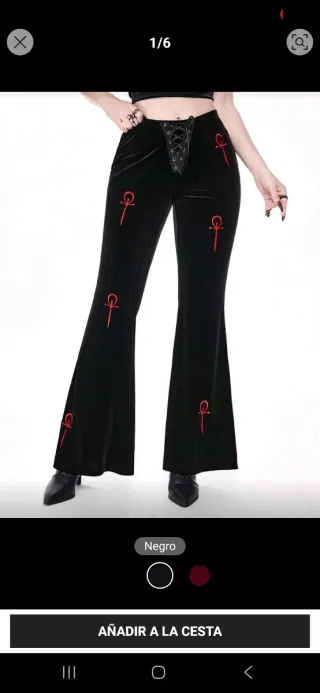 Pantalones acampanados de terciopelo negro con un diseño de ankhs rojos bordados. Cintura alta con cordones. Cintura: 64 cm, Caderas: 88 cm, Largo: 102 cm, Entrepierna: 78 cm, Muslo: 54 cm vampiro la mascarada goth gothic gótico vtm vampire