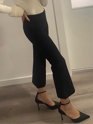 Pantalones negros de corte acampanado. También está disponible en color rosa palo. La talla es entre XS-S - Tejido elástico. - Cintura alta. - Diseño moderno.