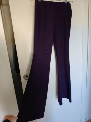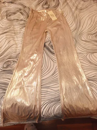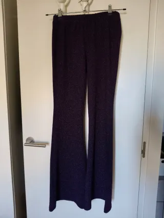 Pantalones de fiesta con lentejuelas plateadas y negras. Son de Lefties y están a estrenar. - Diseño acampanado. - Cintura elástica.