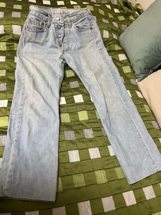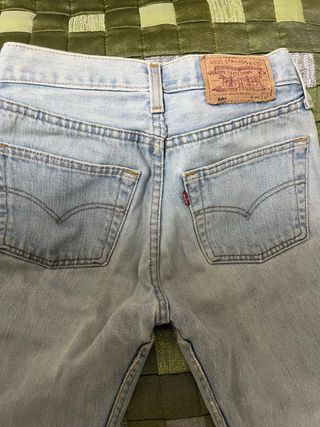 Pantalones vaqueros de la marca Levi's. - Talla 24. - Color azul. - Ligeramente acampanados. - Largo por debajo del tobillo (yo mido 154) - Tiro medio-bajo.
