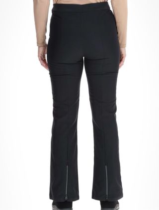 Pantalones de esquí Upshill para mujer en color negro. Diseñados para la montaña y la nieve. - Cintura alta. - Pierna acampanada. Tejido: Elasticidad de 4 Direcciones, Ilus D-Lab, Softshell. Diseño: Liso. Tecnología del Tejido: Transpirable, Repelente al Agua. Sostenibilidad: Fabricado con Materiales Reciclados. Ajuste: Slim Bootcut. Polainas para Nieve, Fuelle con Cremallera.