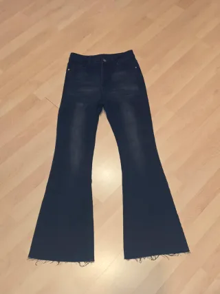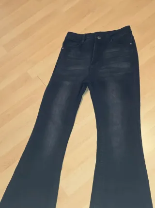 Pantalón vaquero de estilo flare, con un corte acampanado. - Diseño de tiro alto. - Bajo deshilachado. - Tejido vaquero.