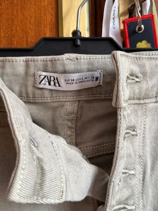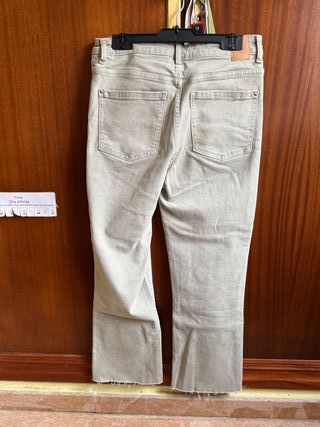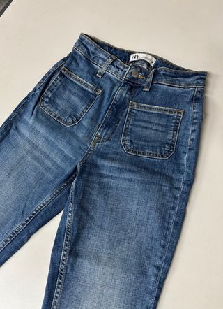 Pantalones vaqueros de Zara. Vaqueros de tiro alto con corte por encima del tobillo. Usados en un par de ocasiones. Talla 32. Material elástico. - Diseño de corte recto. - Bolsillos frontales de parche. - Lavado desgastado.