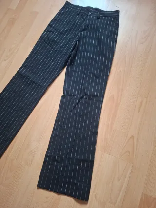 Pantalón de campana de la marca Zara. - Diseño de pierna ancha. - Cintura alta. - Cierre de cremallera y botón. - Linea en medio negra con estilo - Talla 36, peor se parece a la 38 - Puesto solo dos veces