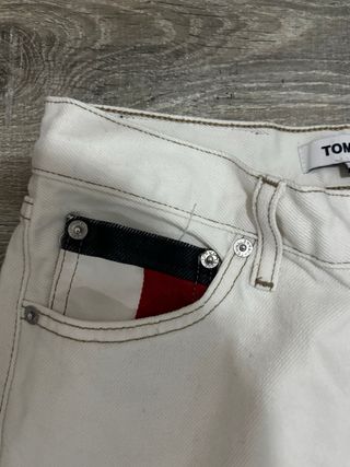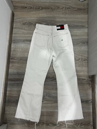 Pantalón estilo Harper de Tommy Hilfiger en color blanco. - Corte acampanado. - Detalle de pespuntes. - Bajo deshilachado.
