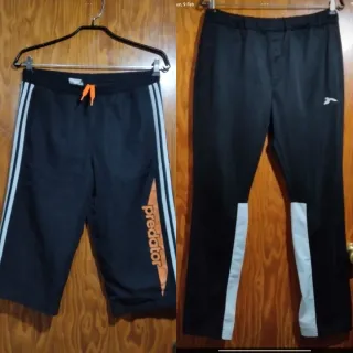 bermudas Adidas Predator ,la talla no se ve es L,y pantalón Tenth talla L,los dos medidas de cintura elástica de 40cm en su estado normal,dan hasta 46/47 cm,y largo desde cintura, bermudas 65cm,y pantalón 103cm,los 2 Impecables,los 2x13€, SUELTOS Bermudas 10€ pantalón 3.50€ - Bermudas deportivas Adidas con cordón naranja y detalles de rayas blancas. 10€ - Pantalón largo Tenh con detalles blancos en los laterales.3,50€