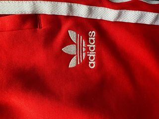 Pantalones deportivos Adidas de color rojo. - Diseño con tres rayas blancas a los lados. - Logo de Adidas en la parte superior izquierda. PRECIO NEGOCIABLE