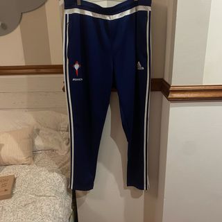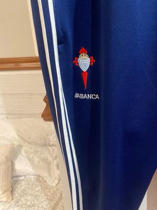 Pantalón largo deportivo del Celta de Vigo. - Diseño con las tres franjas características de la marca. - Escudo del equipo bordado en la pierna izquierda. - Logo de la marca en la pierna derecha.