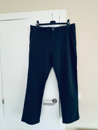 Pantalón premium tipo chino marca Adidas, color negro y talla L que es 38x30 de Adidas. Son muy suaves, cómodos y elegantes. Se pueden usar con camisetas o camisas. Está en perfectas condiciones.