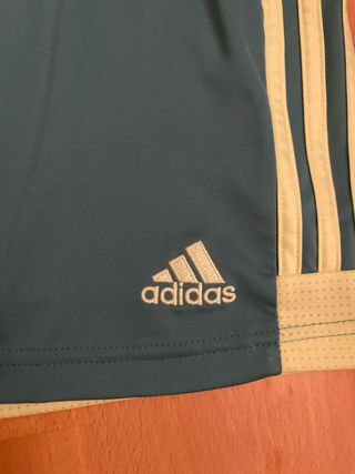 Conjunto deportivo Adidas que incluye una camiseta y un pantalón corto. - Pantalón reversible. - Camiseta de manga corta. - Pantalón corto con estampado. - Tres rayas características de la marca en el pantalón.