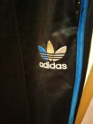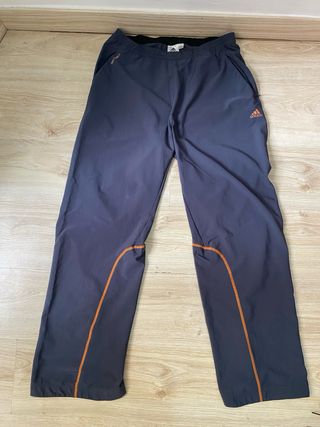 Pantalón deportivo **vintage de Adidas del año 2005, una pieza con estética Y2K / retro sportswear muy buscada actualmente. Track pants Medidas 📏. Largo 104 cm, Cintura 38cm, Ancho pierna Muslo 26cm. Modelo. Altura 1,74, 77k El pantalón tiene color azul oscuro con detalles en naranja, logo Adidas bordado y bolsillos con cremallera, lo que lo hace muy práctico para el día a día. Además cuenta con paneles de ventilación tipo mesh, que lo hacen más cómodo y transpirable. Su fit es relajado / ligeramente oversize, perfecto para outfits streetwear, retro o deportivos. Envios 24h