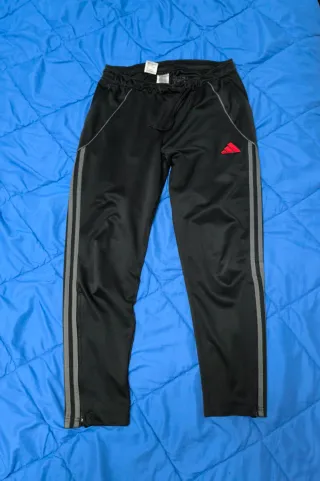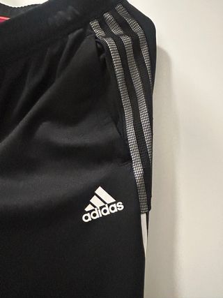 Pantalones deportivos Adidas con detalles en rojo y blanco. - Cintura elástica con cordón. - Logo de Adidas en la pierna. - Paneles de color en los laterales.