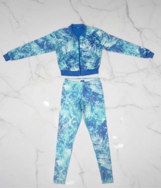 Conjunto de chándal Adidas con un llamativo estampado. - Chaqueta con cremallera completa. - Pantalón con cintura elástica. - Diseño con las icónicas tres rayas laterales.