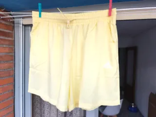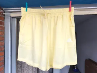 Pantalones cortos de la marca Adidas en color amarillo, con etiqueta. - Cintura elástica con cordón. - Bolsillos laterales