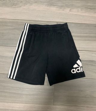 Pantalón Adidas negro corto en perfecto estado. El color se ve un poco mal por la luz pero no está descolorido. Sin signos de uso. Usados solo en una ocasión. En un lateral el logo en grande y en el otro las tres rayas Adidas. Bolsillos en ambos laterales. Cordón en el interior de la cintura para ajustar. Envíos en 12/24h🚚📦