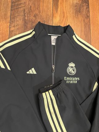 Conjunto de chándal del Real Madrid. Talla n - Chaqueta con cremallera completa. - Pantalón con cordón ajustable en la cintura. - Diseño con las icónicas tres rayas.