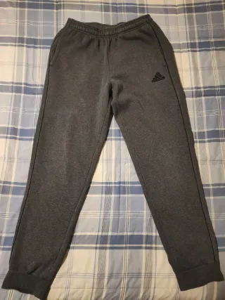 Pantalón de chándal Adidas en color gris, talla M. Diseño deportivo y cómodo. - Logo de Adidas bordado. - Cintura elástica. - Bolsillos laterales. -de talla M pero poco grande es como L