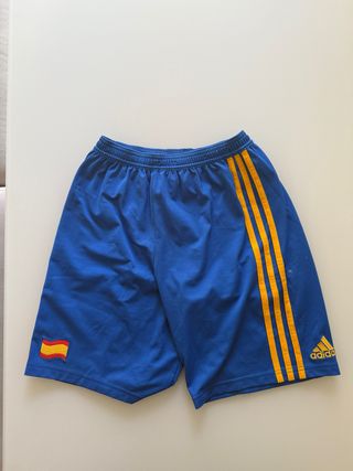 Pantalón corto deportivo de la Selección Española. - Diseño con las tres franjas características de Adidas en amarillo. - Bandera de España bordada en el lateral izquierdo. - Se hacen envíos.
