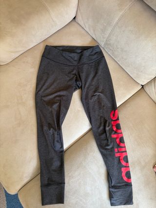 Mallas deportivas Adidas de color gris. Presentan un llamativo logo de la marca en color rosa en un lateral. Súper cómodas, quedan ajustadas sin apretar, se adaptan súper bien a la pierna. 61% algodón #mallasadidas #mallasdeporte #mallasgimnasio