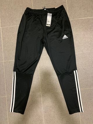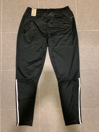 Pantalón deportivo Adidas en color negro. Cuenta con un diseño moderno y detalles característicos de la marca. - Cintura elástica. - Cremalleras en los bolsillos. - Tres rayas laterales. Sin usar. Parte de un conjunto, también tengo la chaqueta.