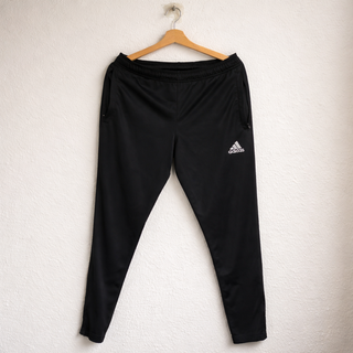 Pantalón deportivo Adidas de color negro. Cuenta con el diseño clásico de tres rayas en los laterales. - Tres rayas blancas en los laterales. - Logo de Adidas en la pierna derecha.