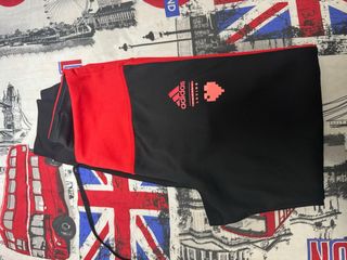 Mallas deportivas Adidas originales, ideales para running y entrenamientos. Tejido técnico AEROREADY, transpirable y de secado rápido. Color negro con detalles en rojo. Incluyen bolsillo trasero y ajuste cómodo que no se mueve al correr. En muy buen estado, sin rotos ni desgastes. Talla S (36 aprox.). Perfectas para correr, gimnasio o entrenar al aire libre.