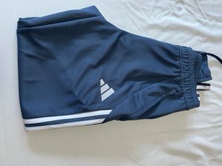 Pantalones deportivos Adidas de color azul. - Diseño con tres rayas blancas a los lados. - Logo de Adidas en la pierna derecha. Precio Negociable.