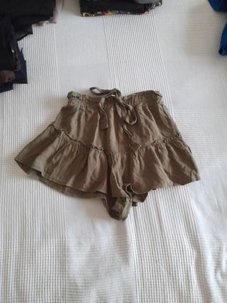 Pantalones cortos de Zara con cintura elástica y bolsillos laterales. El diseño fluido y el color verde oliva los hacen una prenda versátil. - Cintura elástica fruncida. - Bolsillos funcionales a los lados. - Tejido ligero y con caída.