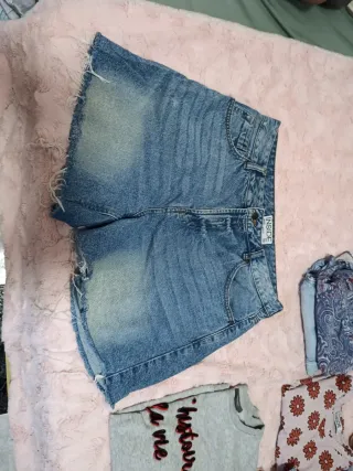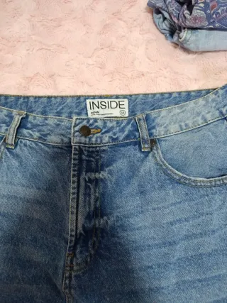 Está como nuevo lo usé un par de veces. La verdad q queda bien y es cómodo pero me dió por los tiros altos y este es tirando a bajito. Quite las etiquetas porque me picaba hasta al probarmelo. Cintura 80 cm y largo 102 cm. El color es azul como el que se ve cuando lo llevo puesto. Las otras fotos sale más grisáceo y menos parecido el color real
