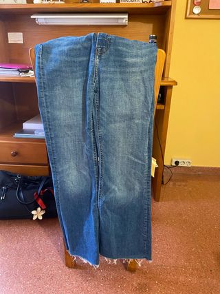 Pantalón anchos de la rodilla para abajo, llegan un poco más altos del tobillo. - Tejido denim elástico. - Diseño de cinco bolsillos.
