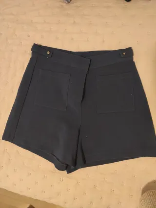 Shorts de cintura alta en color azul marino. - Dos bolsillos de parche en la parte delantera. - Talla 36 - Los puse solo un par de veces, muy buen estado
