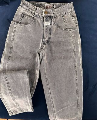 jeans marca CLOSED. color gris lavado a la piedra. casi sin usar. altos y ceñidos de cintura. Talla 36 pequeña, para cinturas estrechitas. Tiene el corte caracteristico de CLOSED lateral que sienta genial.