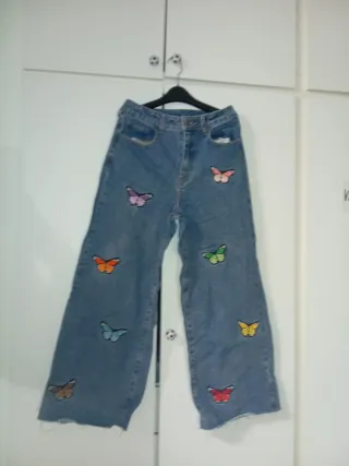 Pantalones vaqueros anchos con bonitas mariposas