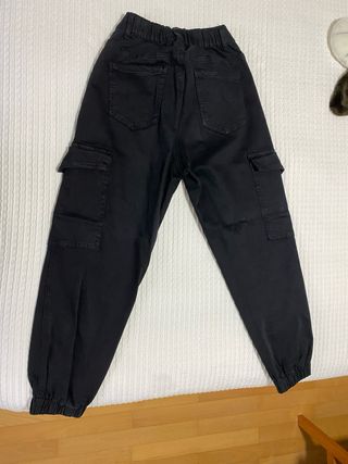 Pantalones cargo negros, usados muy pocas veces. - Diseño cargo con múltiples bolsillos. - Cintura elástica. - Puños ajustados.