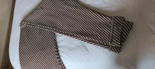 Pantalón de estampado pequeño tipo pata de gallo en tonos marrón, negro y beige. Corte ajustado, muy favorecedor y elegante. ✔️ Estampado: Pata de gallo / Cuadros pequeños ✔️ Colores: Marrón, negro y beige ✔️ Corte: Slim / Ajustado ✔️ Tiro medio ✔️ Cintura con trabillas ✔️ Estado: Muy buen estado, sin manchas ni desperfectos