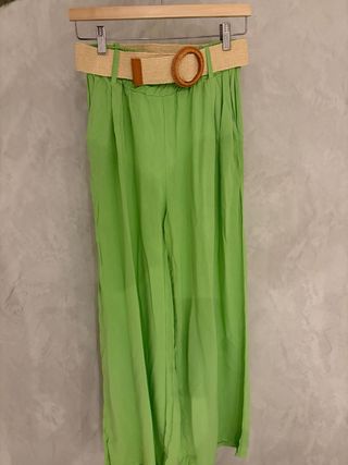 Pantalón de corte ancho y fluido. Color lima - Incluye cinturón. - Tejido ligero. Talla S Muy buen estado SOLO DISPONIBLE PARA ENVIAR. No vendo en persona.