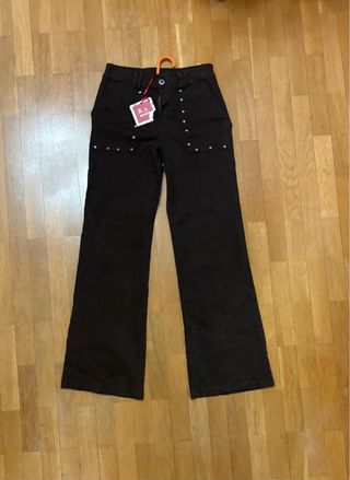 Pantalón gris oscuro de corte ancho. Nuevo con etiquetas aunque en la cintura está un poco roto. talla XS. Medidas en foto