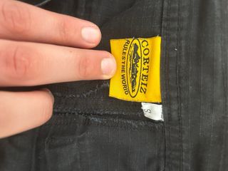 Pantalón cargo de la marca Corteiz en color negro. Presenta un diseño moderno y funcional. - Bolsillos cargo laterales. - Estampado blanco en la parte trasera. - Etiqueta amarilla en el lateral.